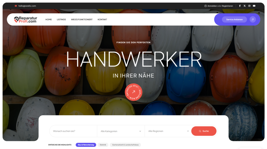 ReparaturProfi connects you with trusted tradespeople across Austria, Germany, and Switzerland. Search by trade, compare verified profiles and real reviews, and contact the right professional directly — no middlemen, no hidden fees.